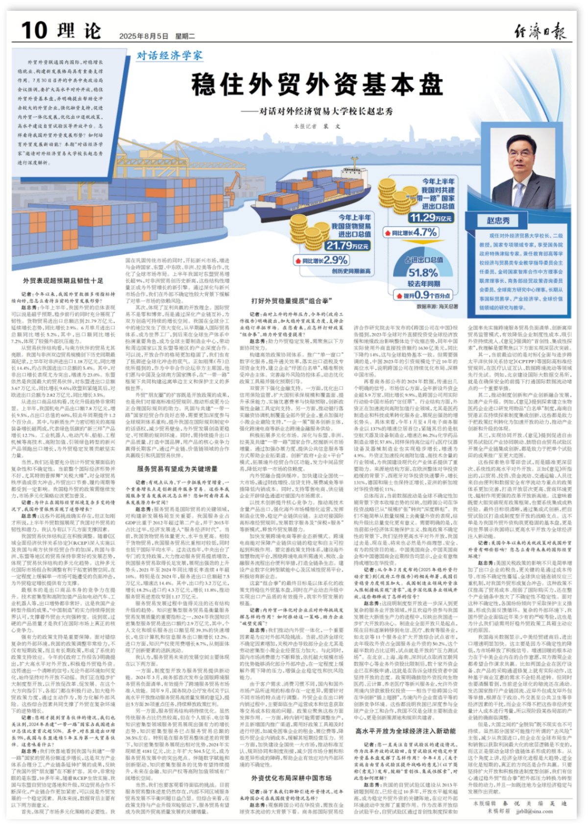 稳住外贸外资基本盘——对话对外经济贸易大学校长赵忠秀