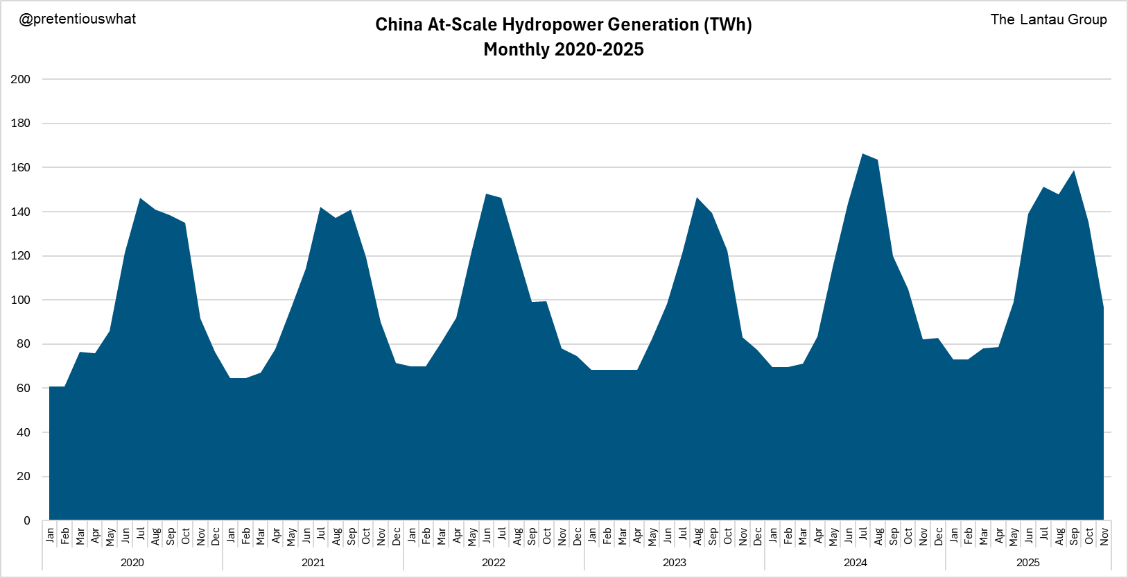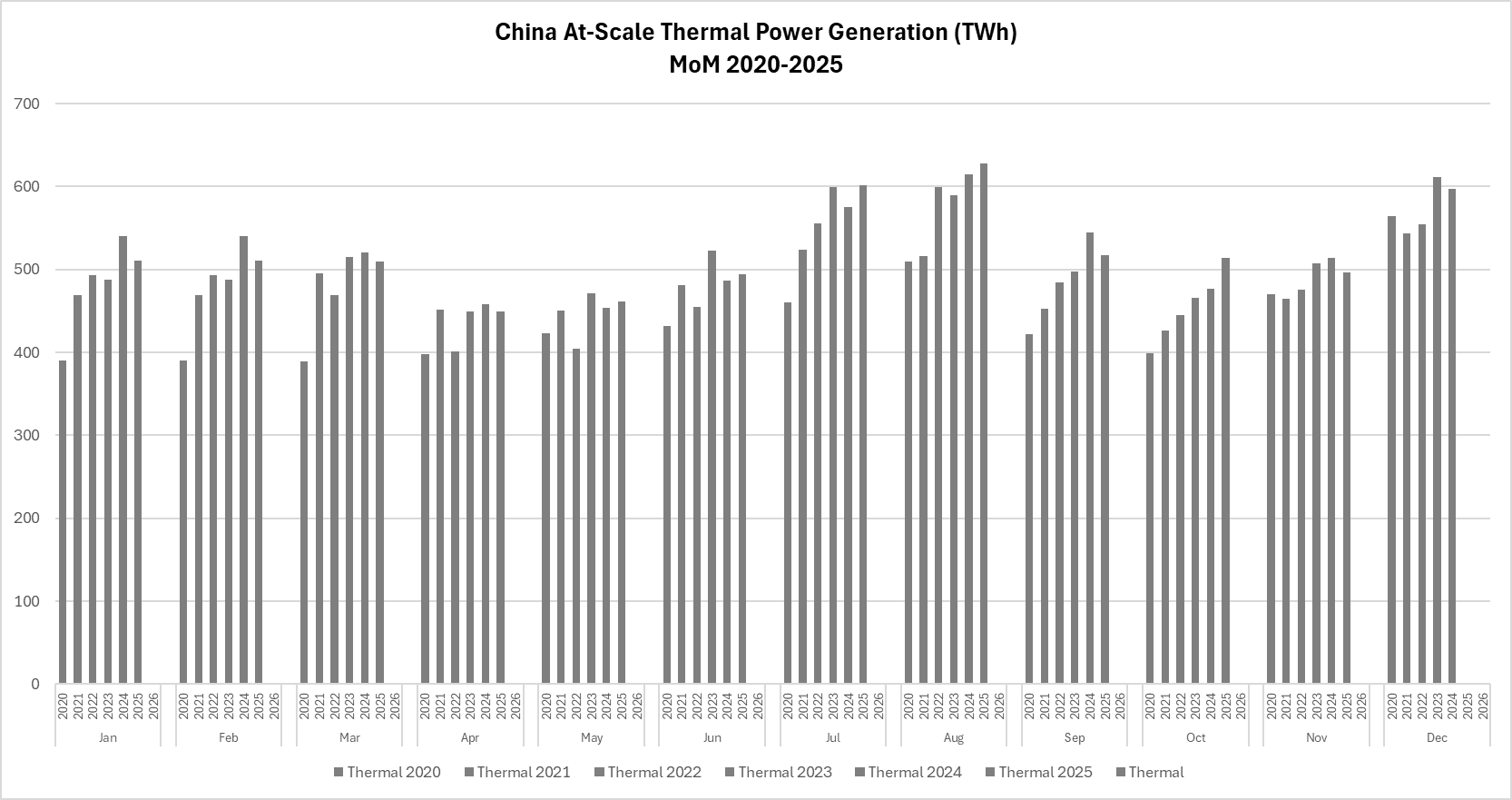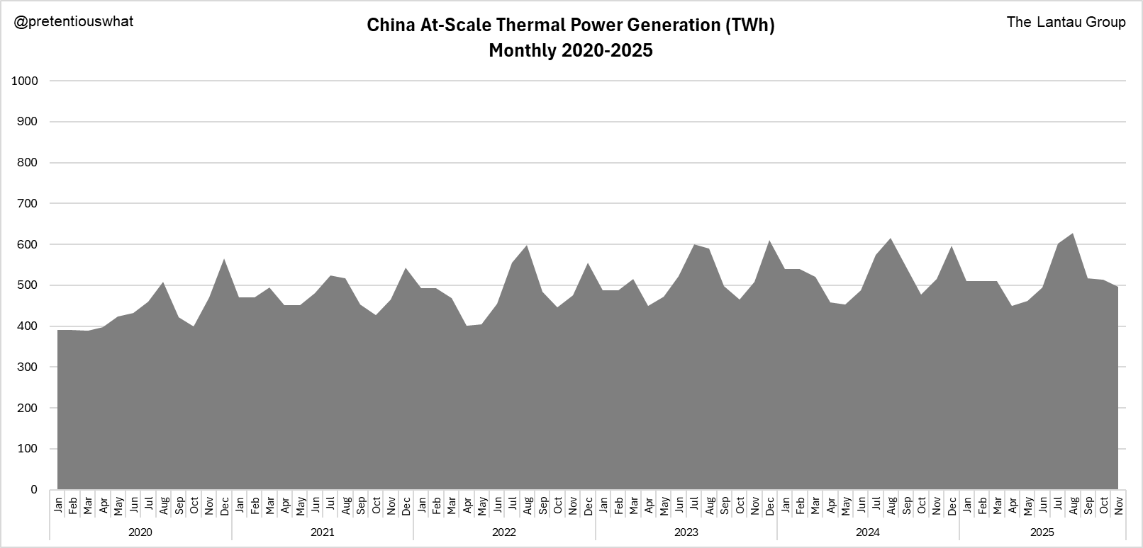 That's why recent NBS data show 2025 YTD (i.e., Jan-Nov) at-scale thermal generation is DOWN 0.7%, even though total at-scale power generation is up 2.4%.