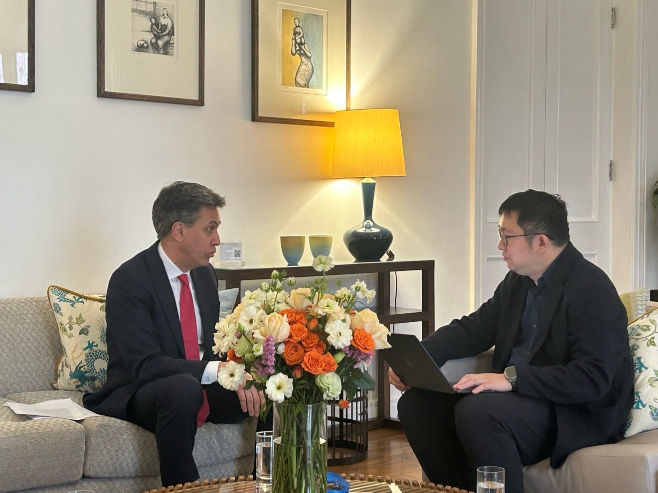 Miliband also sat down for an exclusive interview with Caijing, a Chinese financial media outlet.